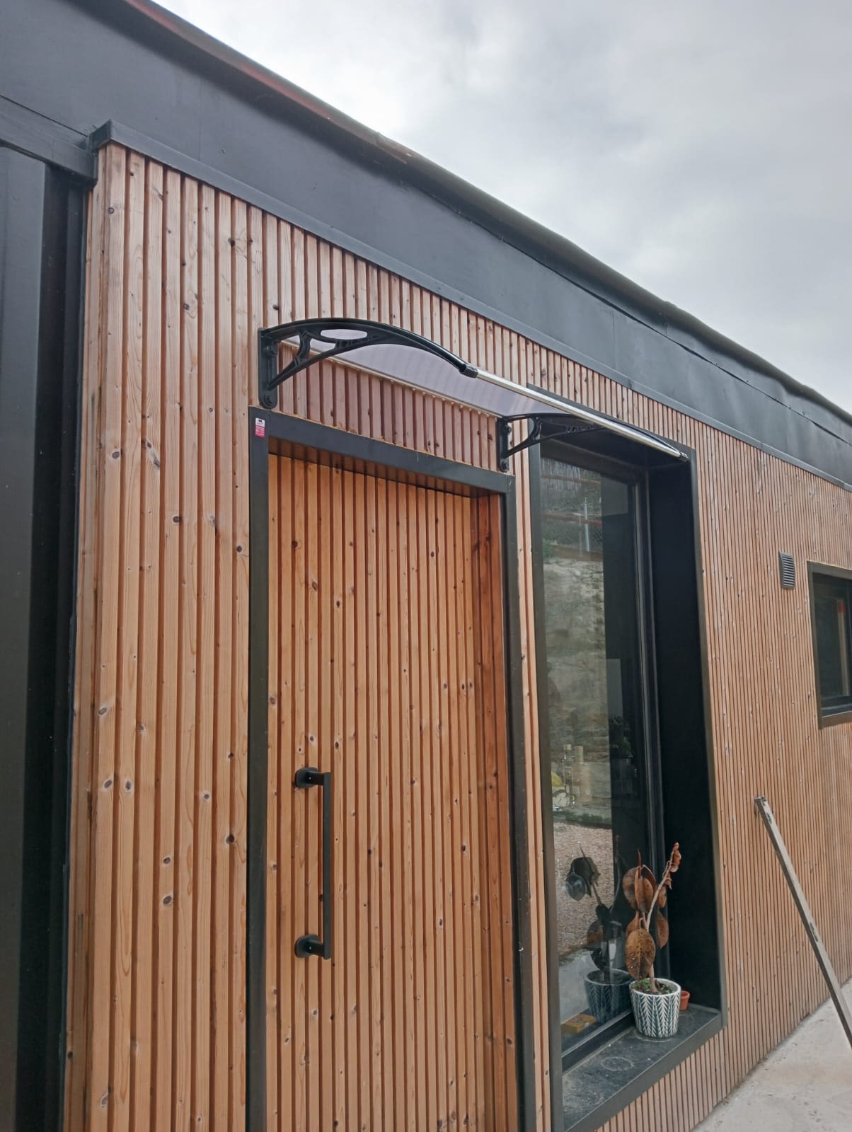 La estética Black & Wood se caracteriza por la fusión de elementos modernos y naturales. La madera carbonizada, también conocida como madera Shou Sugi Ban, aporta una textura única y una rica tonalidad oscura que contrasta magníficamente con la elegancia atemporal de la chapa microndulada galvanizada. Esta combinación crea un impacto visual audaz y contemporáneo, que se complementa perfectamente con la chapa característica de los contenedores marítimos, agregando un toque industrial al diseño que se adapta a cualquier entorno.